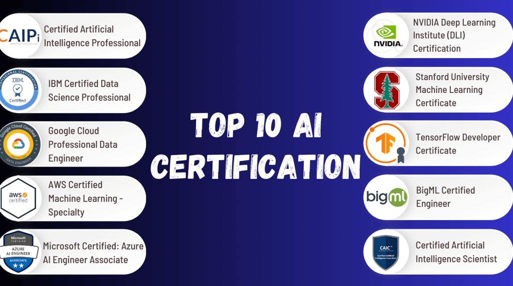 This article explores the top AI certifications for 2024, helping professionals choose the best programs to advance their careers. Featuring certifications from Google, Microsoft, IBM, AWS, and Stanford, it highlights valuable options for building in-demand AI skills.