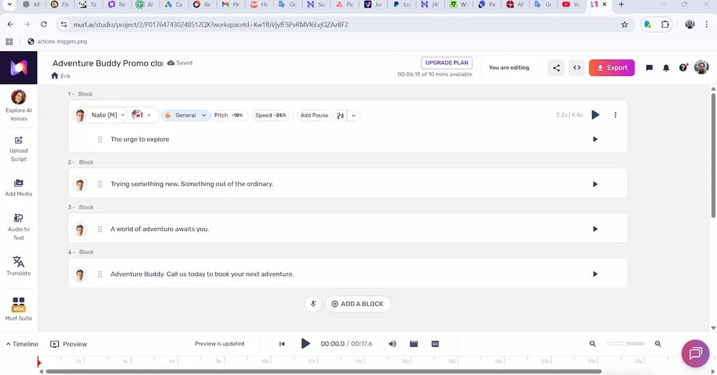 Add clean AI voiceovers Murf