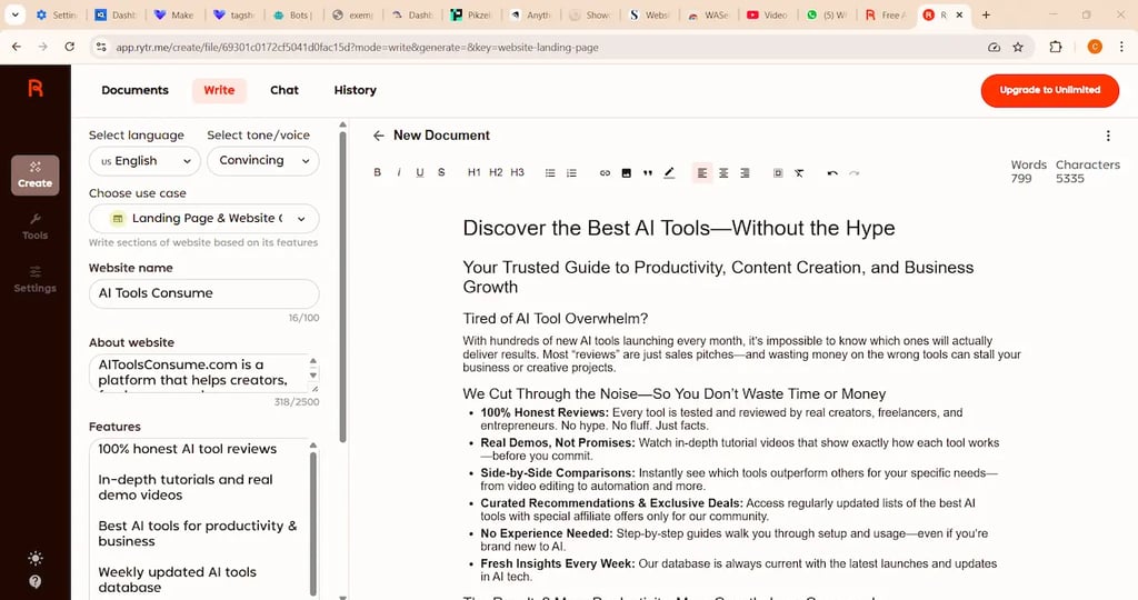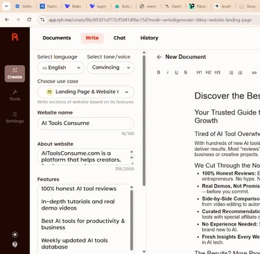 • Rytr → I generate short content (social posts, quick ideas, product descriptions) when I need speed.