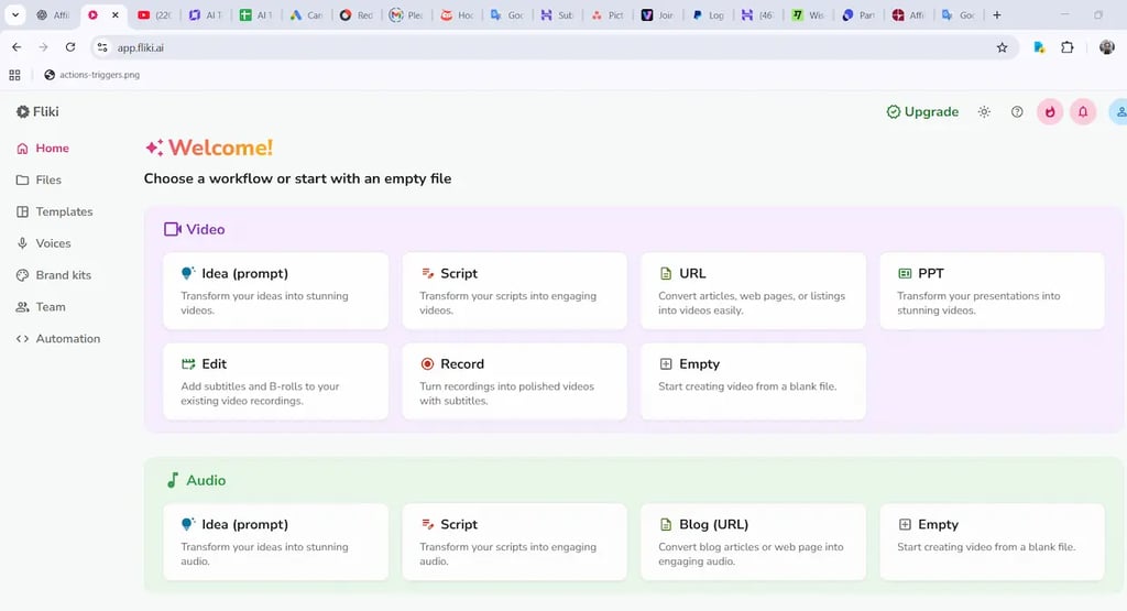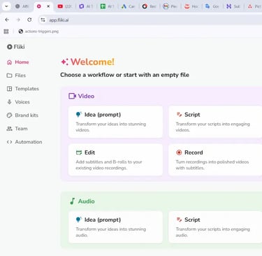 • Fliki → I convert scripts into full video drafts with voiceovers and scenes.