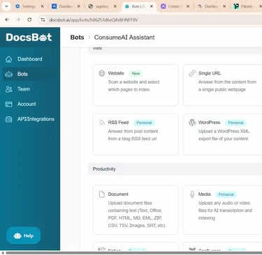 DocsBot is perfect if you’ve ever wished your website could answer customer questions for you. It turns your documents — PDFs, manuals, FAQs, website pages, instructions — into an AI-powered chatbot that can respond instantly and accurately.