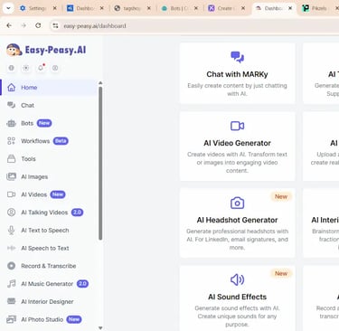 • Easy-Peasy AI → I use one-click templates for captions, descriptions, emails, summaries, and rewrites.