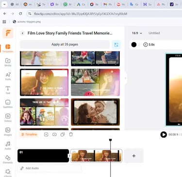 FlexClip is a surprisingly strong video editor with one of the best template libraries I’ve used. Whether you're making ads, intros, slideshows, business videos, TikToks, YouTube intros, or promo clips, FlexClip helps you create polished content quickly. If Fliki is “automation,” FlexClip is “creative control.”