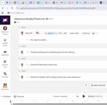 • Murf → I generate realistic narration when I need higher voice quality or different accents.