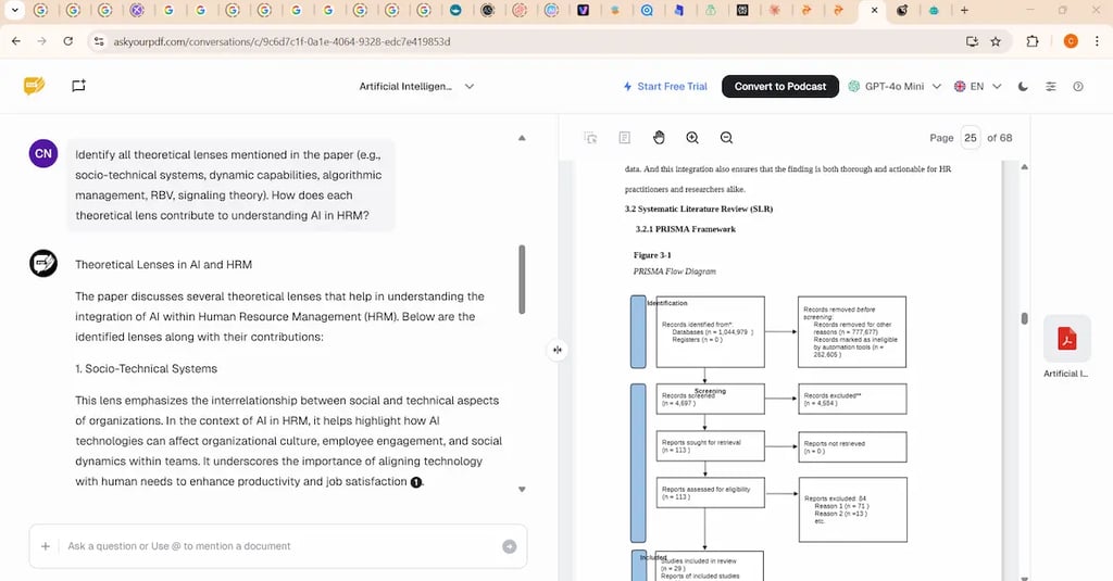 When I wrote my research paper, “Artificial Intelligence in Human Resource Management: A Systematic Literature Review, Meta-Analysis, and Thematic Synthesis,” I had to analyze 29 peer-reviewed studies. It was incredibly difficult—many nights spent deciphering dense academic language, trying to extract key themes, verifying data, analysis using R, and rewriting sections repeatedly just to improve clarity. I eventually submitted the paper to IJHRM journal, where it’s now under review, but the process reminded me just how overwhelming academic reading and writing can be.
